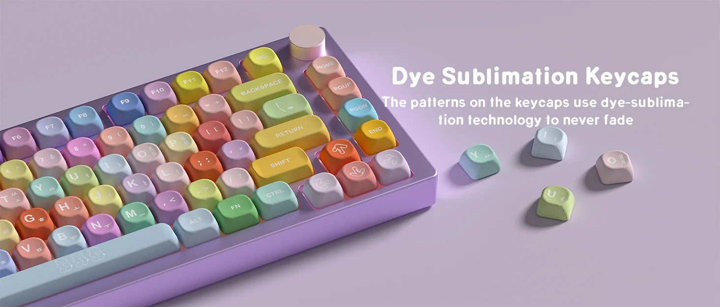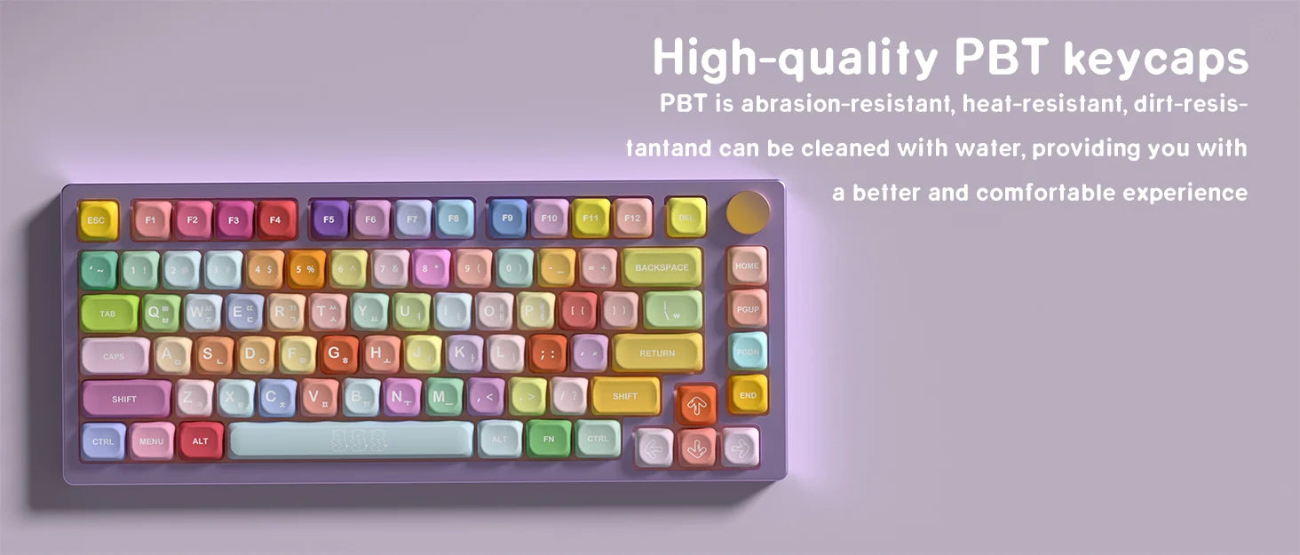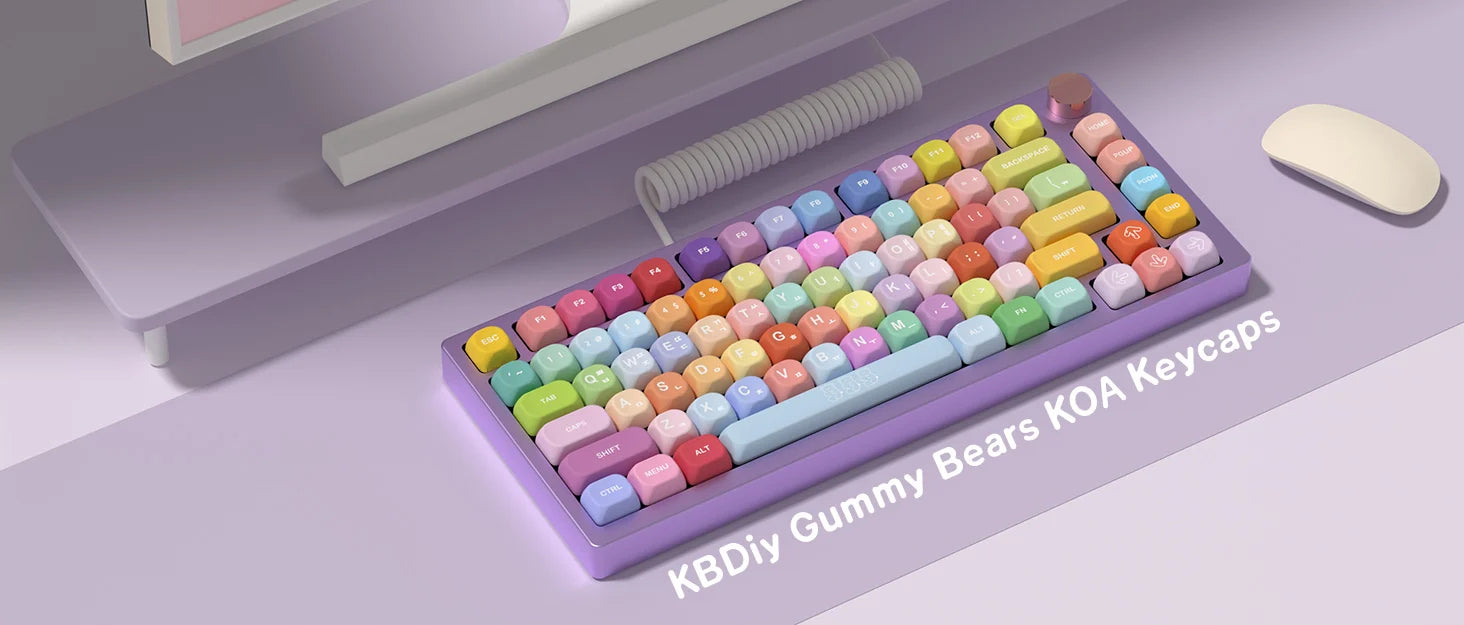 Experience customization with the KBDiy KOA Profile Gummy Bears Keycap set. These PBT custom Korean keycaps are designed for mechanical keyboards and feature a cute gummy bears theme. The set includes 141 keys and is compatible with ISO layout and 7U space bar. Perfect for adding a touch of personality to your gaming setup.