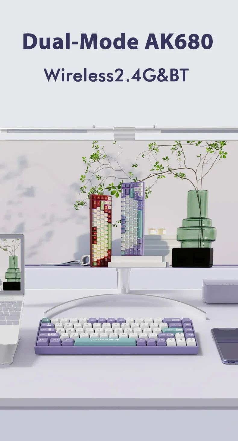 Experience precision with the AJAZZ AK680 Mechanical Keyboard. This keyboard features ABS keycaps and a 68-key layout. It offers both wired and wireless Bluetooth connectivity, making it versatile for any setup. Designed for gamers, it includes hot-swappable keys and a custom gasket for a personalized typing experience. Perfect for both PC and laptop use, it combines functionality and style in one sleek design.