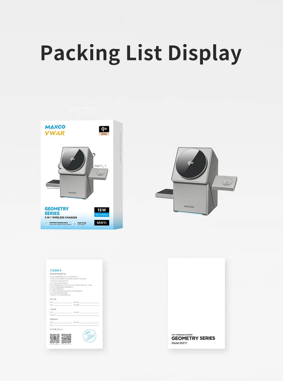 Experience the convenience of the MAXCO Qi2 3-in-1 Charger. This auto-rotating phone dock is compatible with MagSafe for iPhone, Apple Watch Ultra 2, and AirPods. Designed for efficient and fast charging, it supports multiple devices simultaneously and adds a sleek touch to your tech setup.